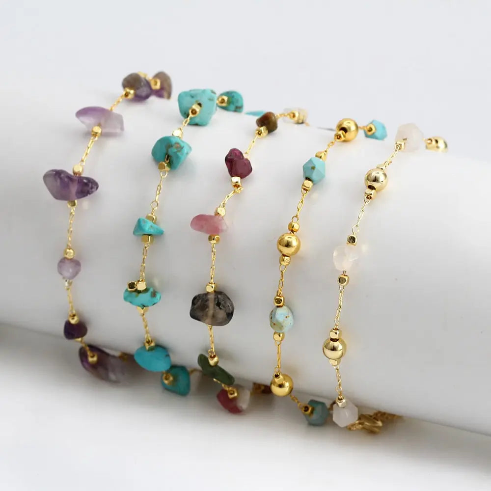 Introducing the Charm Bracelet! This beautiful bracelet is made of high quality materials, including copper, pearls, and natural stones. It's the perfect accessory to add a touch of elegance to any outfit. The Charm Bracelet is also a great gift for any occasion.